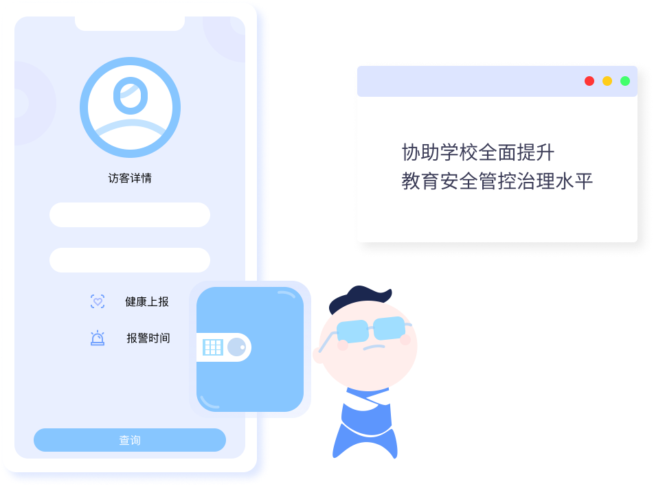 包含校园监控、门禁、道闸、体温检测、安防告警、智慧巡检、健康食谱、健康上报等功能